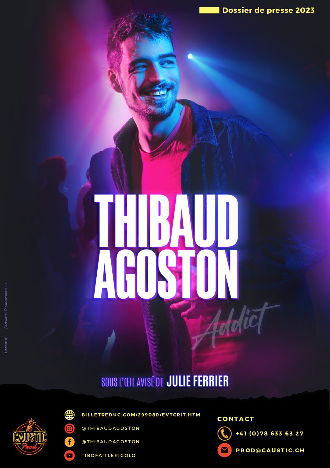 Le spectacle « Addict », anciennement nommé « Homme Moderne », est un stand–up hybride qui comporte également du slam, du rap, du jeu, de la poésie, mis en scène par l’actrice et metteuse en scène Julie Ferrier. Thibaud arrive à convaincre son public avec une plume pointue, un rythme effréné et une originalité évidente.