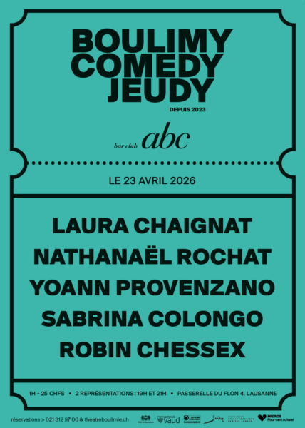 Afin de vous les présenter, le théâtre Boulimie crée le BoulimyComedyJeudy – un rendez-vous mensuel de standup à l’ABC, club parfait pour y proposer des plateaux du genre !